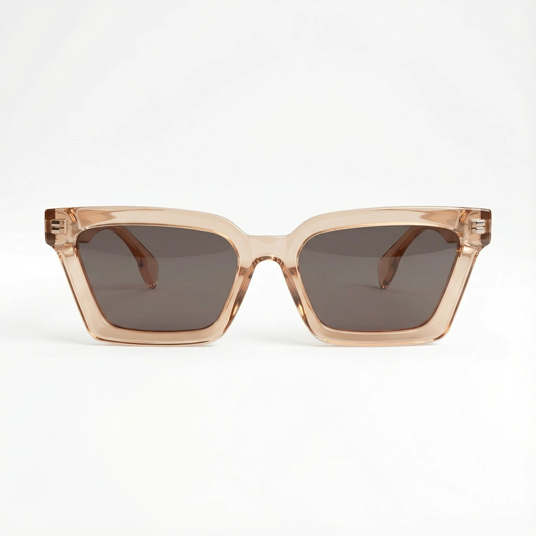 O Arpoador Pé na Areia é aquele óculos que já chega com clima de verão. A armação rosê transparente traz um visual leve e sofisticado, com linhas retas e presença na medida certa. Combina com look básico, look arrumado e com aquele “tô pronta sem esforço”.