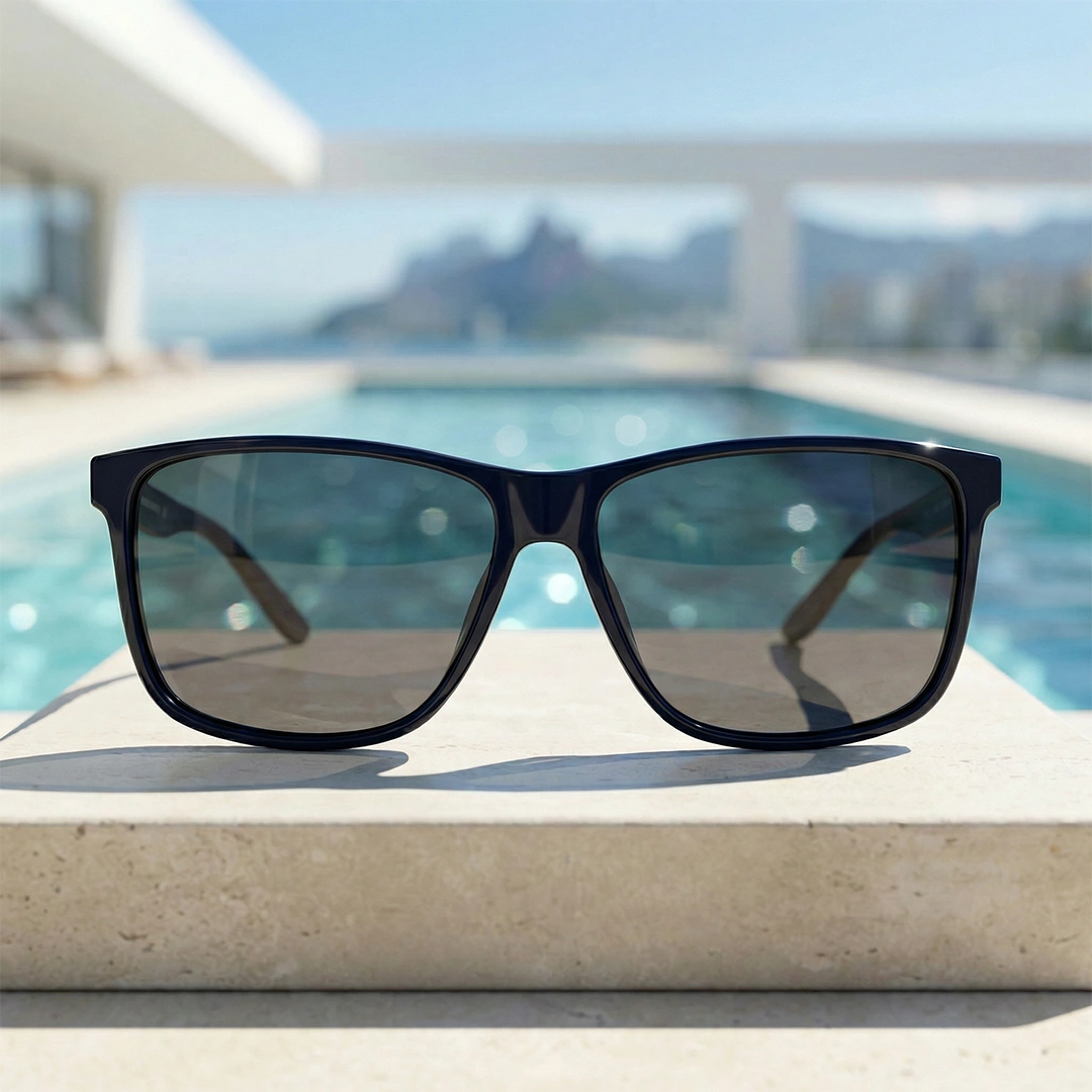 O Copacabana Pós-Praia é aquele óculos preto que encaixa em qualquer momento do dia e deixa o visual mais alinhado sem esforço. A armação retangular com linhas firmes traz uma pegada moderna e urbana, perfeita pra quem curte um estilo limpo, com presença e sem exagero.